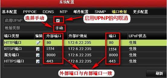 2.进入硬盘录像机本地:主菜单-系统配置-网络配置-端口映射。